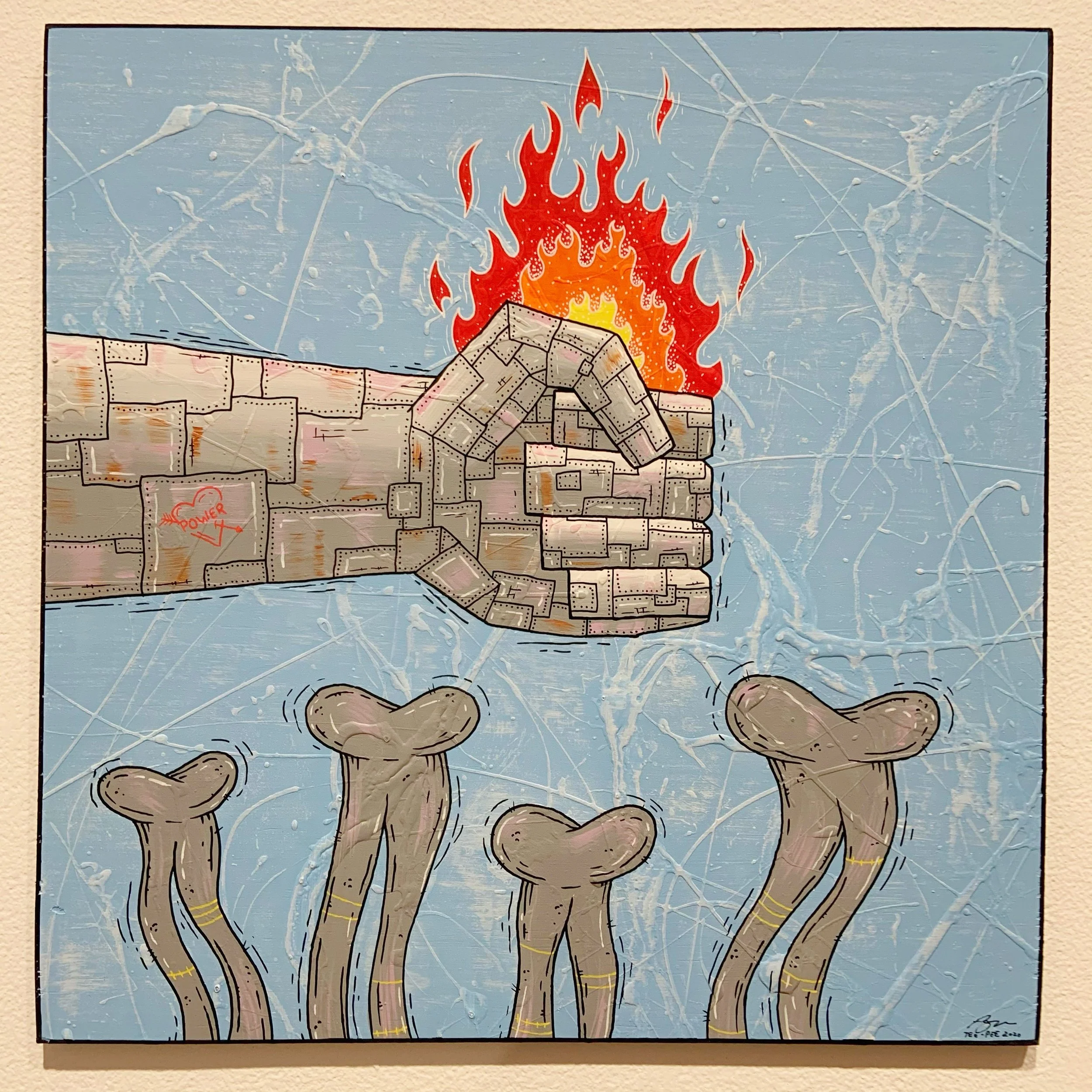 “Unlabelled Coffee with Extra Milk” serves as a catalyst to challenge the viewers perception of contemporary Indigenous people and their connections to the surrounding world. Hard to ask questions are addressed and explored in conjunction with confronting and shutting down mass publicised stereotypes. How much are ya?